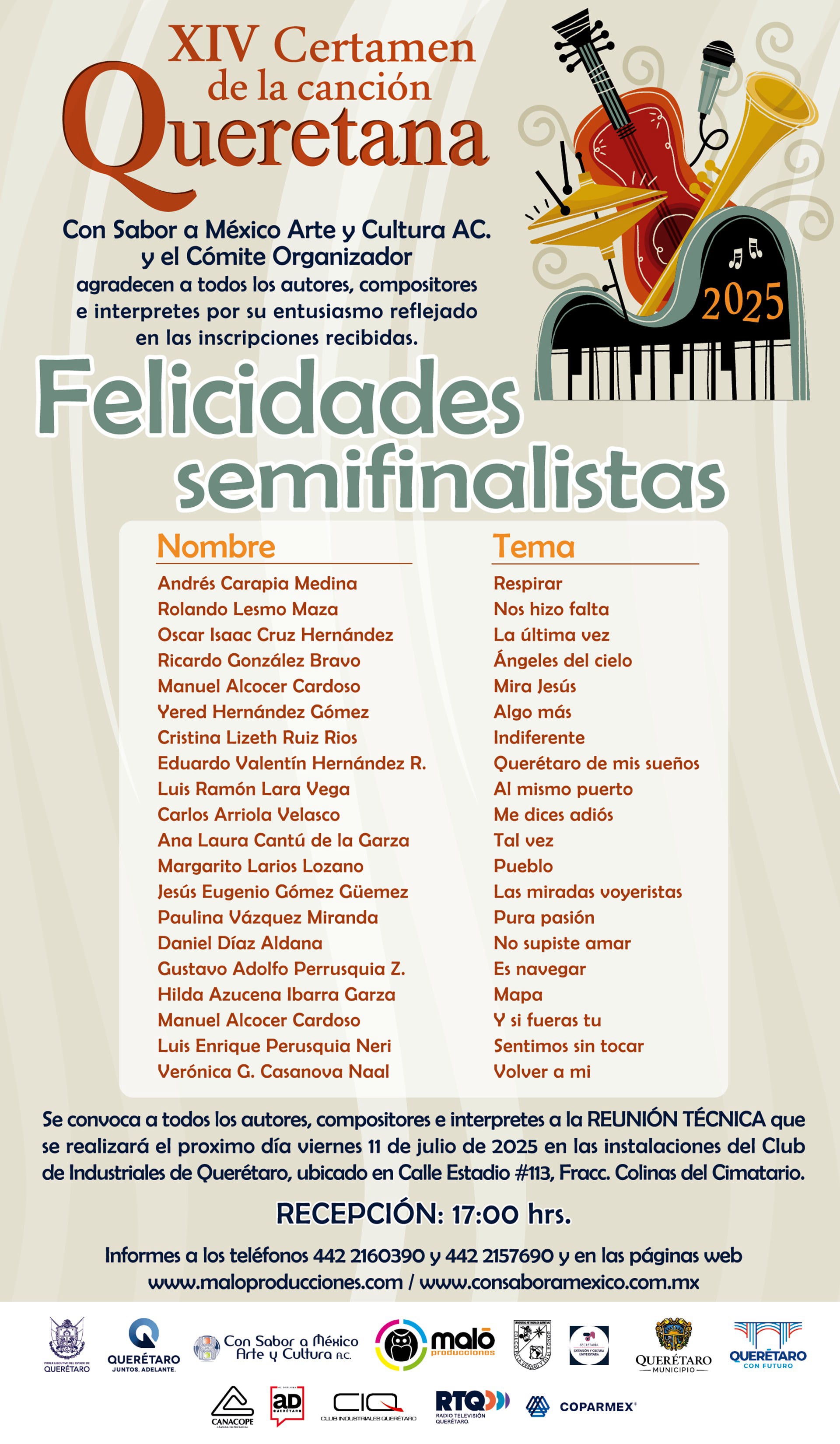 Consulte y descargue la Convocatoria del XIV Certamen de la Canción Querétana